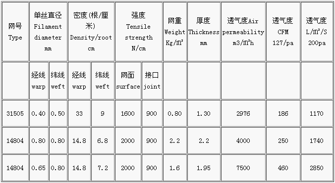 抗靜電聚酯網常用規(guī)格:
